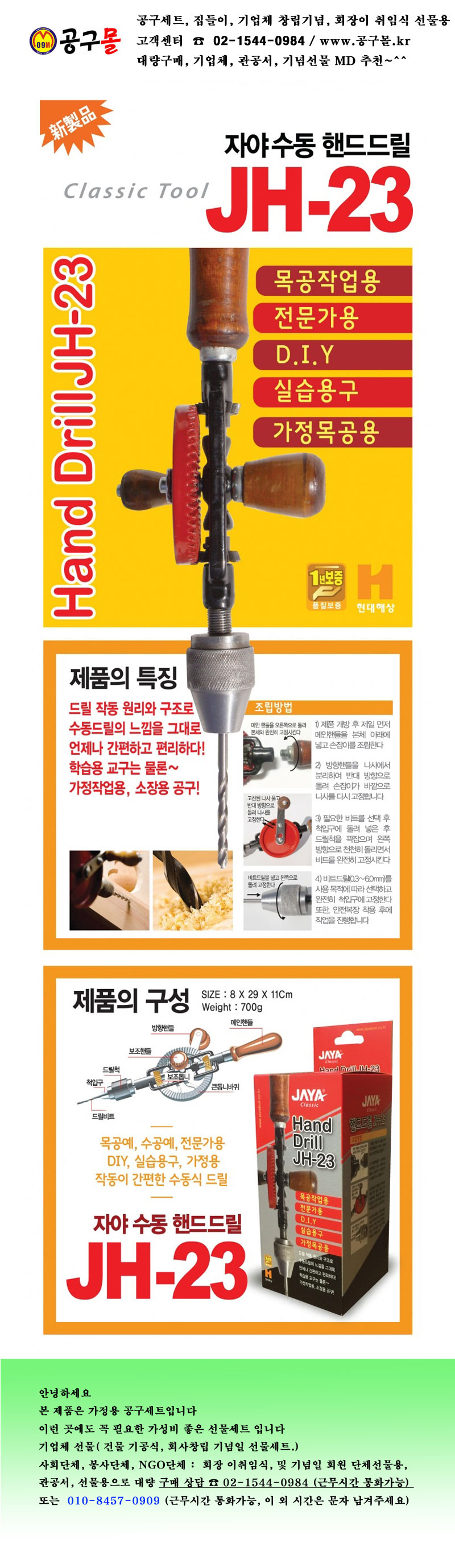 핸드드릴 JH-23 수동드릴, 자야, JH23