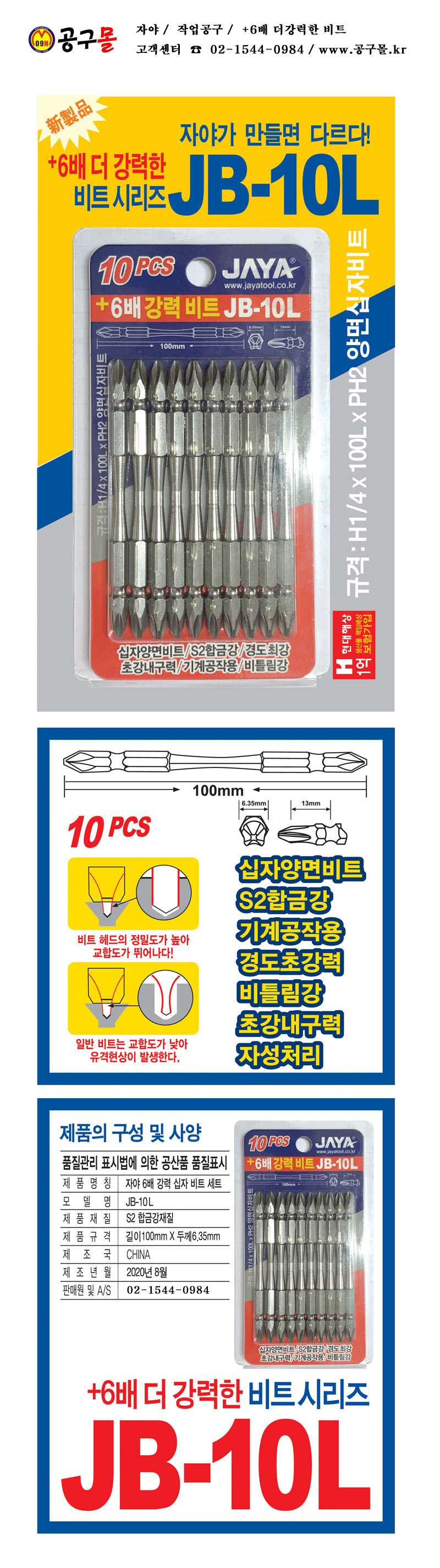 품절.6배 강력비트 JB-10L(100mm) 10PCS, 자야, 비트세트, JB10L