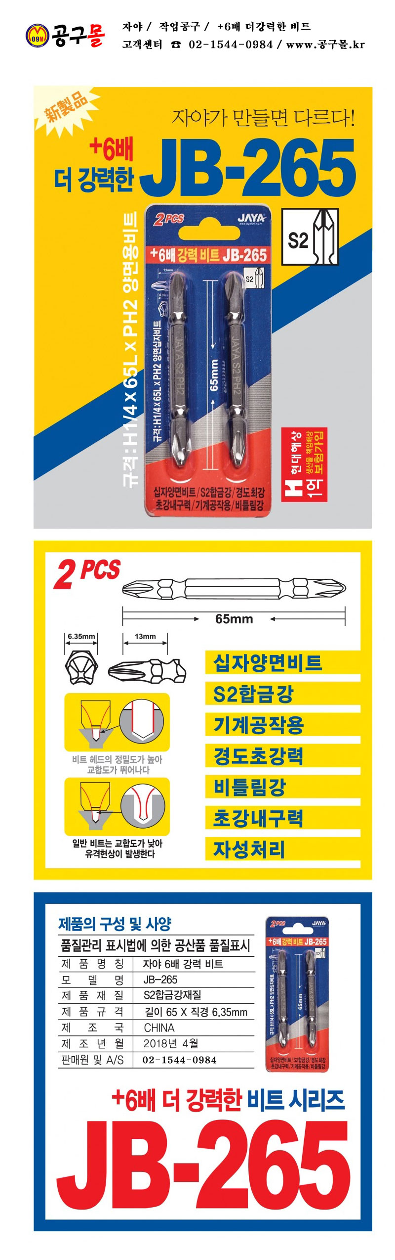 6배 강력비트 JB-265(65mm) 2PCS, 자야, 비트세트, JB265
