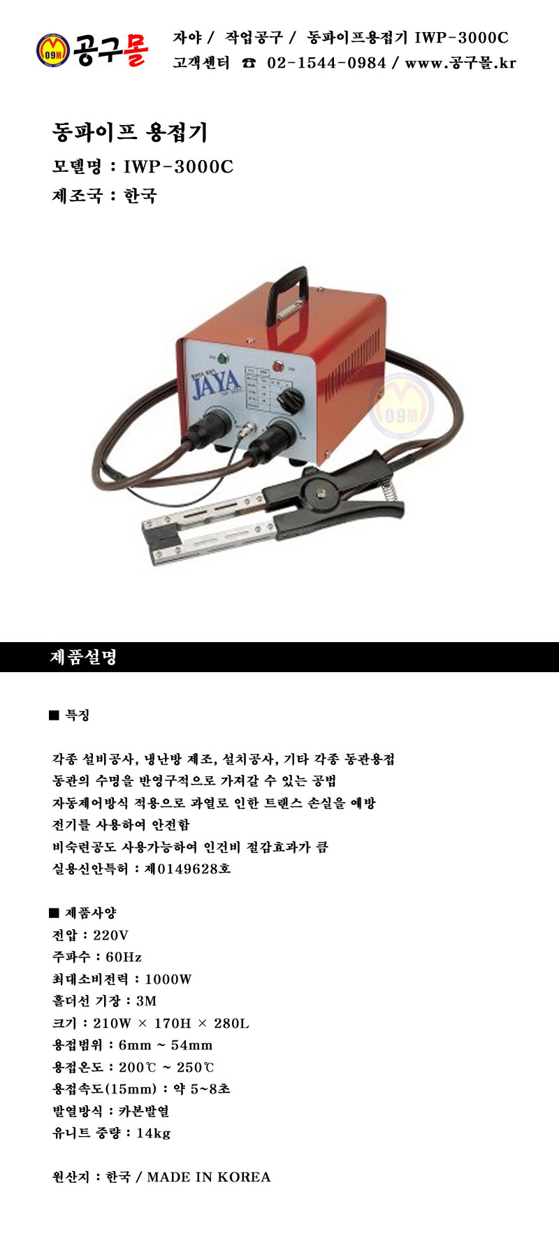 동파이프 용접기 IWP-3000C, 자야, 동용접기, 동파이프웰딩기, IWP3000C