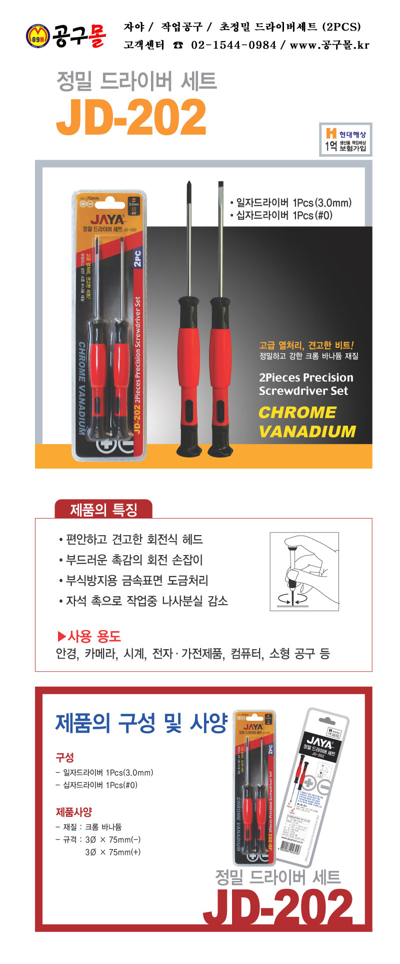 정밀드라이버 2PCS 세트 JD-202, 자야, 드라이버세트, JD202