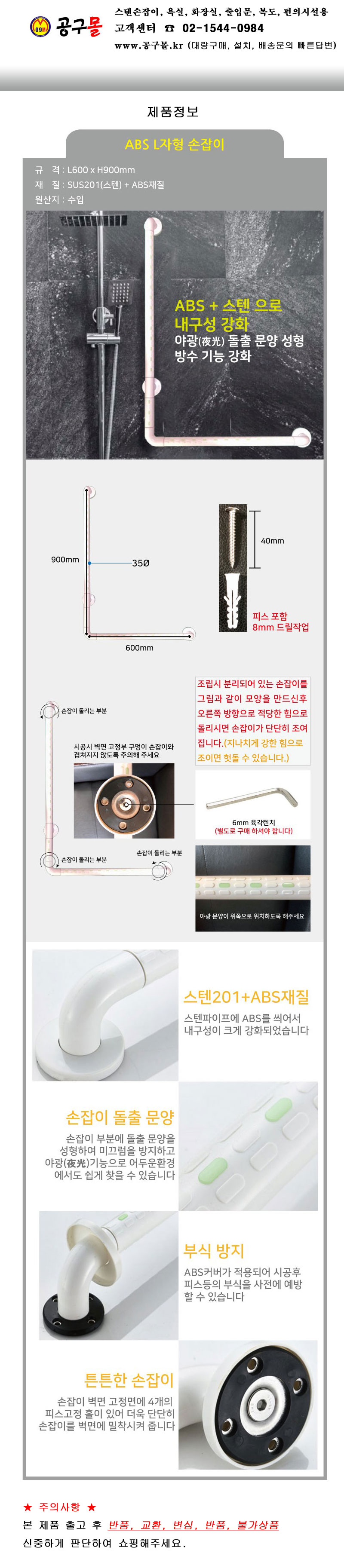 완성 ABS L자형 손잡이(백색) L600xH900, 완성(40) 요양원, 장애인,편의시설