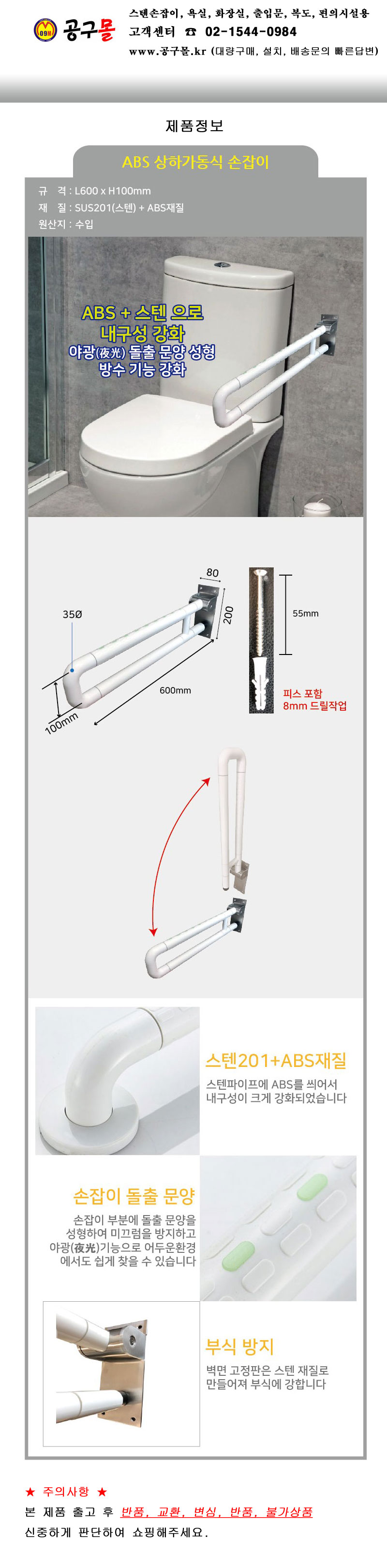 완성 ABS 상하가동식 손잡이(백색) L600xH1000, 완성(40) 요양원, 장애인,편의시설