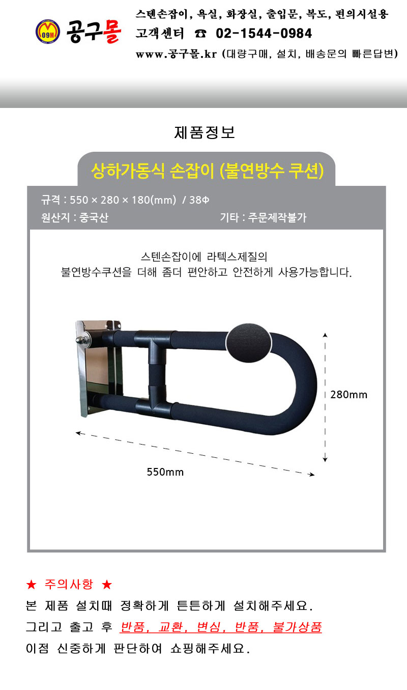 완성 상하가동식 손잡이(불연방수쿠션) 550x280x180, 완성(40) 요양원, 장애인,편의시설