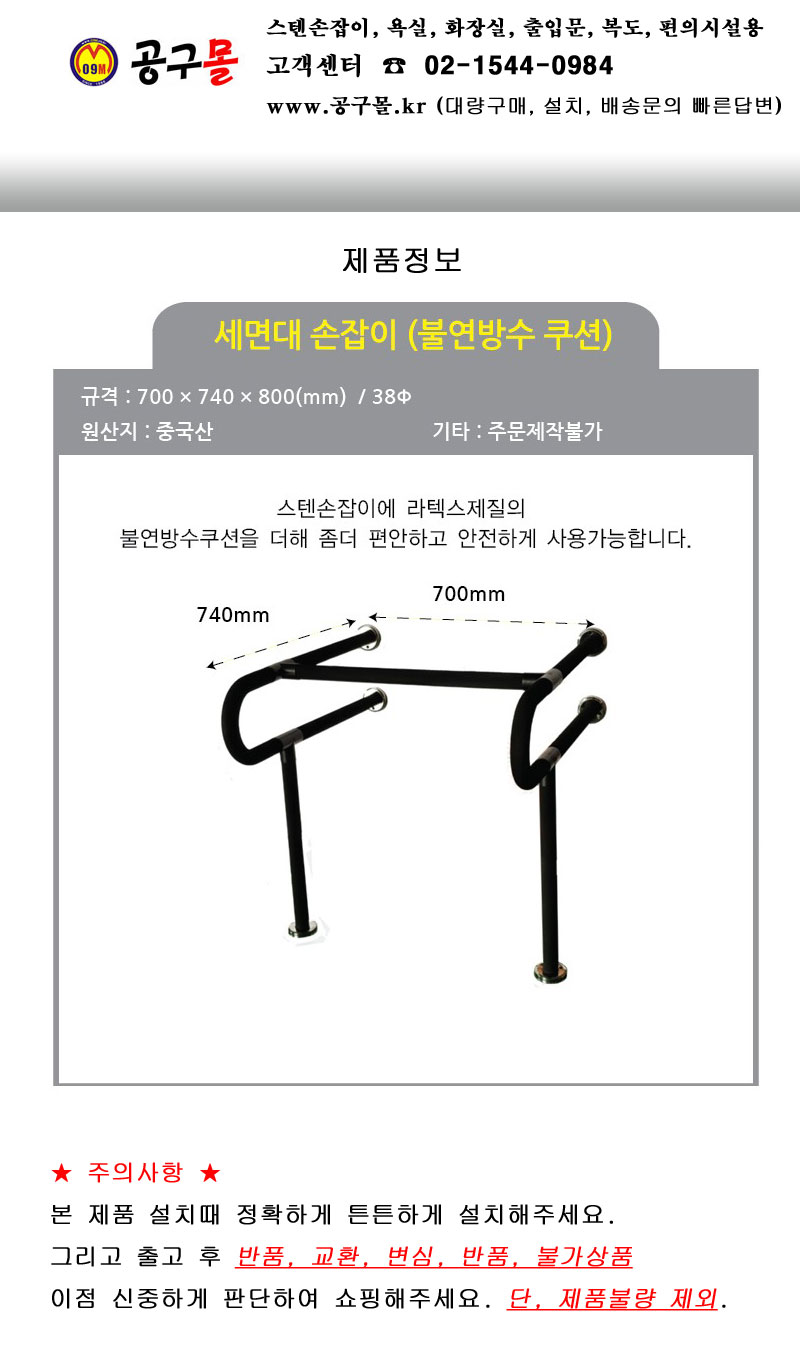 완성 세면대 손잡이(불연방수쿠션) 700x740x800, 완성(40) 요양원, 장애인,편의시설