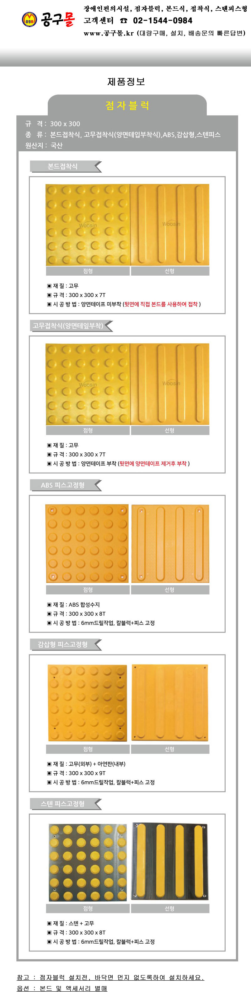 완성 점자블럭(감삽형 피스고정 점형) 300x300x9T, 완성(38) 요양원, 장애인,편의시설,스텐피스포함