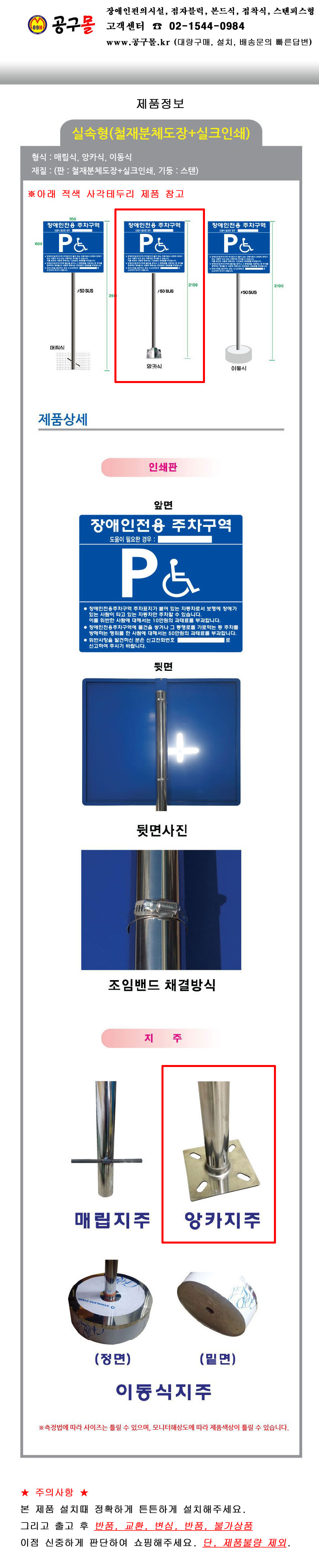 완성 장애인 주차표지판 실속형 앙카식 완성(39) (철재분체도장,실크인쇄)