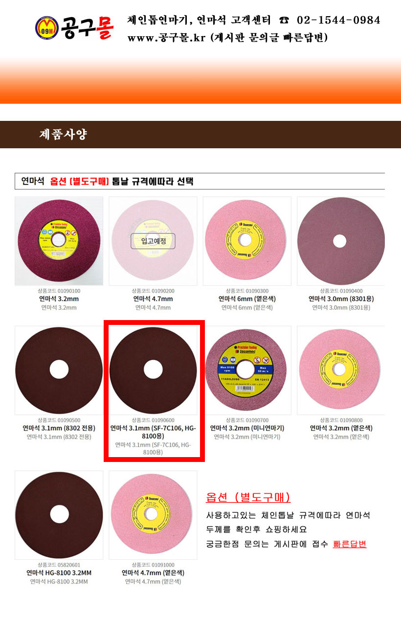 체인톱날 연마석 3.1mm HG-8100/SF-7C106 전용, 톱날연마기,테코멕(TECOMEC) 01090600