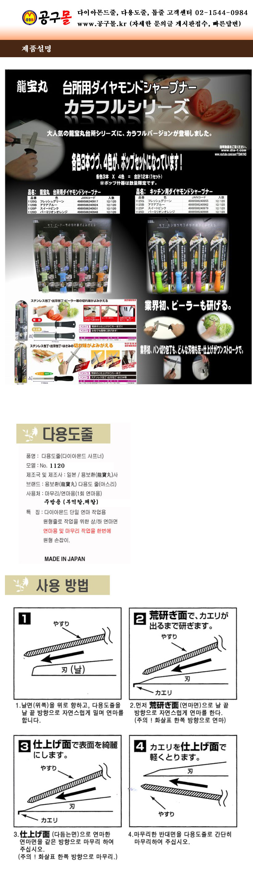 다이아몬드줄 NO.1120 주방용 부억칼,채칼, 용보환, 샤프너, 숫돌, 0240300