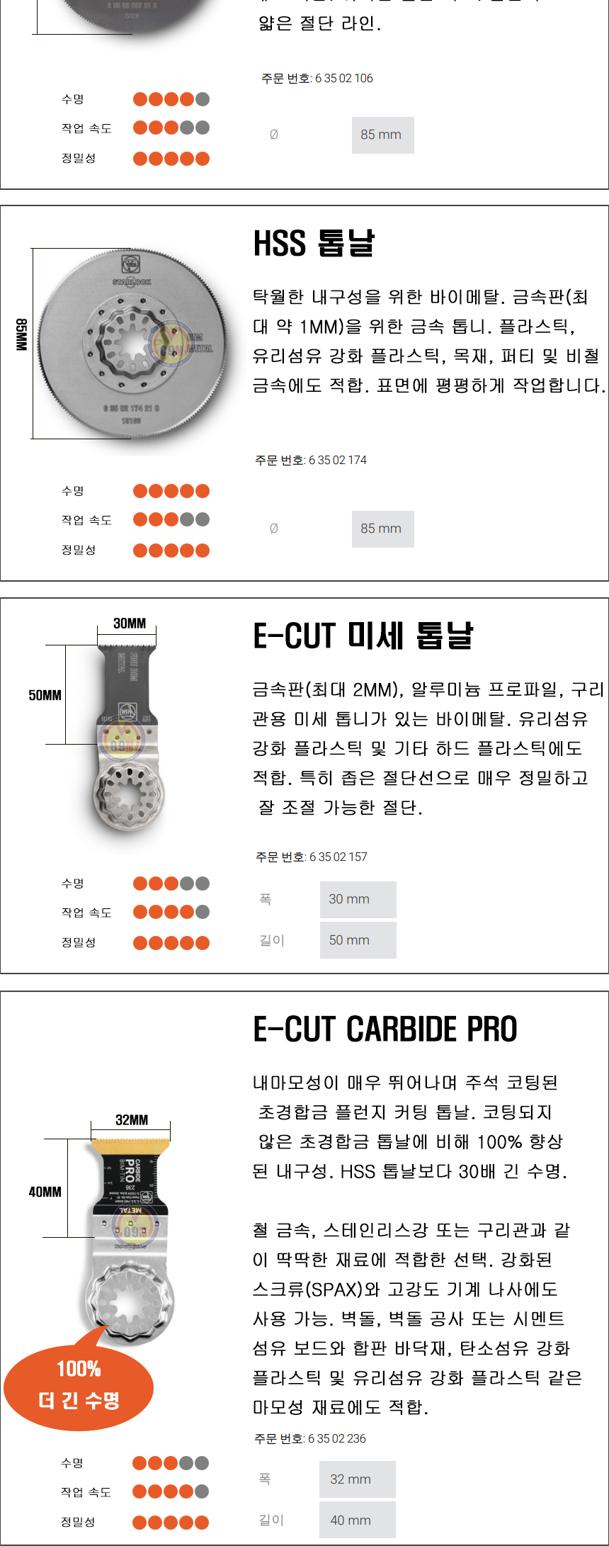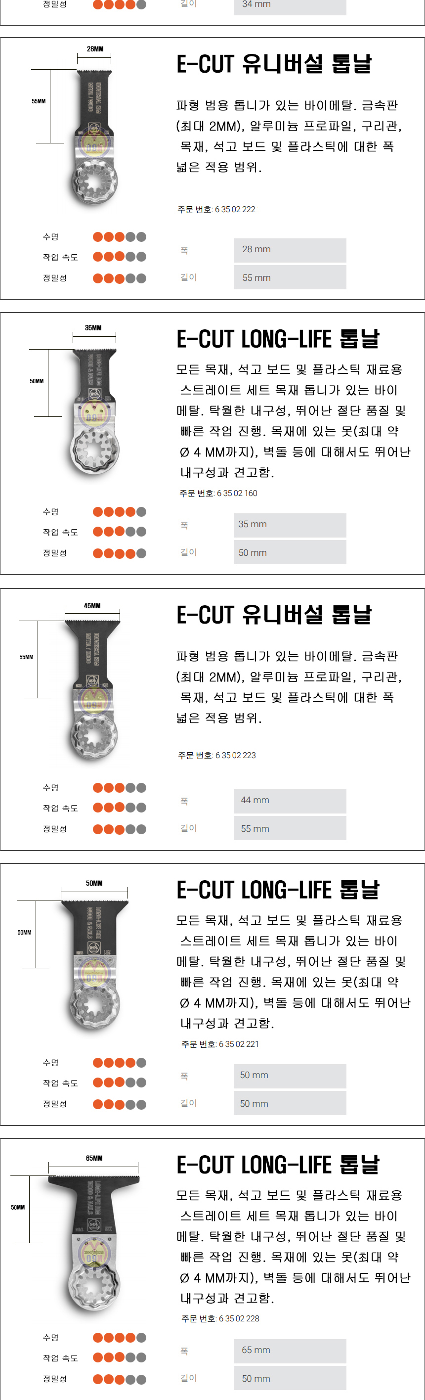 E-CUT LONG-LIFE 톱날 35MM - 1PCS 63502160210 29,700원 30원 EA 1 66