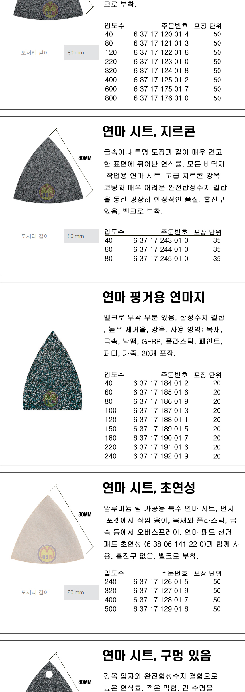 연마시트, 지르콘(구멍) #80 - 35PCS 63717238010 37,400원 37원 EA 1 67