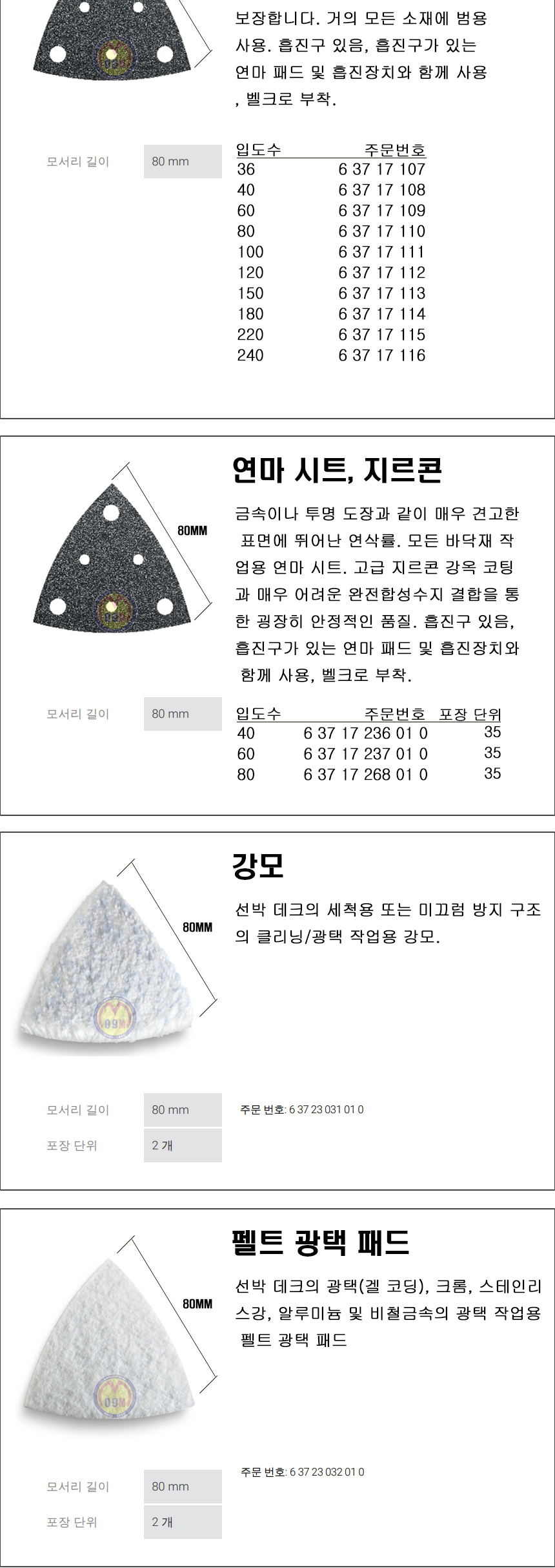 펠트 광택 패드 63723032010 40,700원 41원 EA 1 67