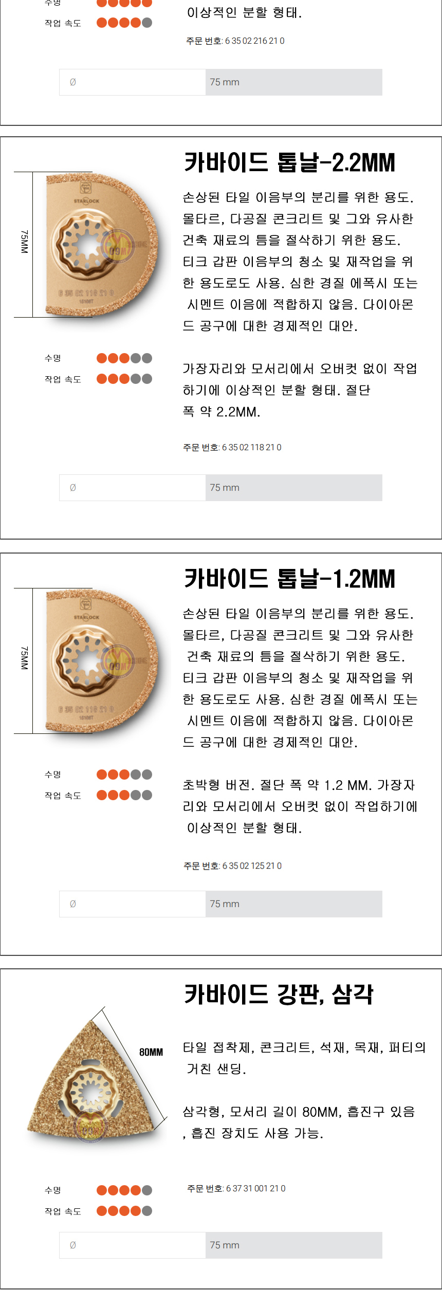 카바이드 톱날 2.2MM 63502118210 55,000원 55원 EA 1 67