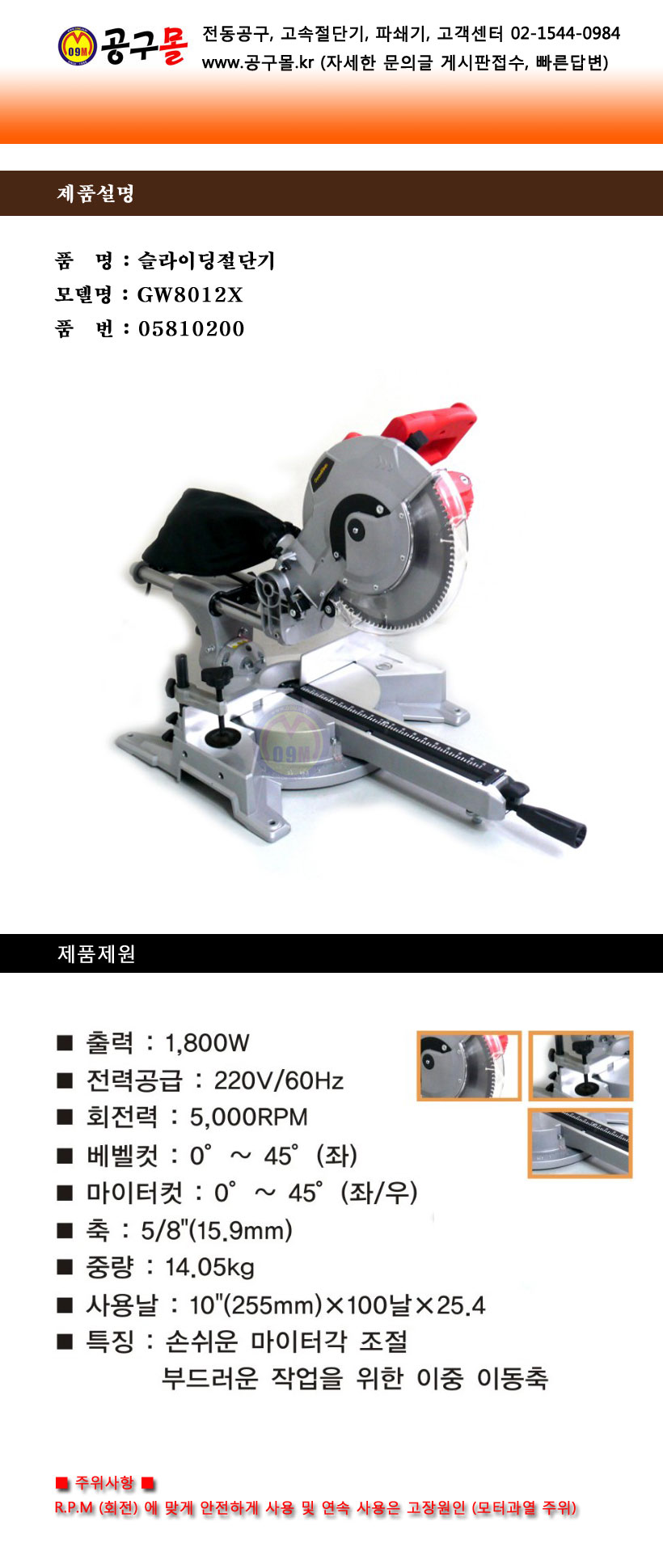 품절,슬라이딩각도절단기 GW8012X 1800W,255mm 홈앤가든 05810200  품절