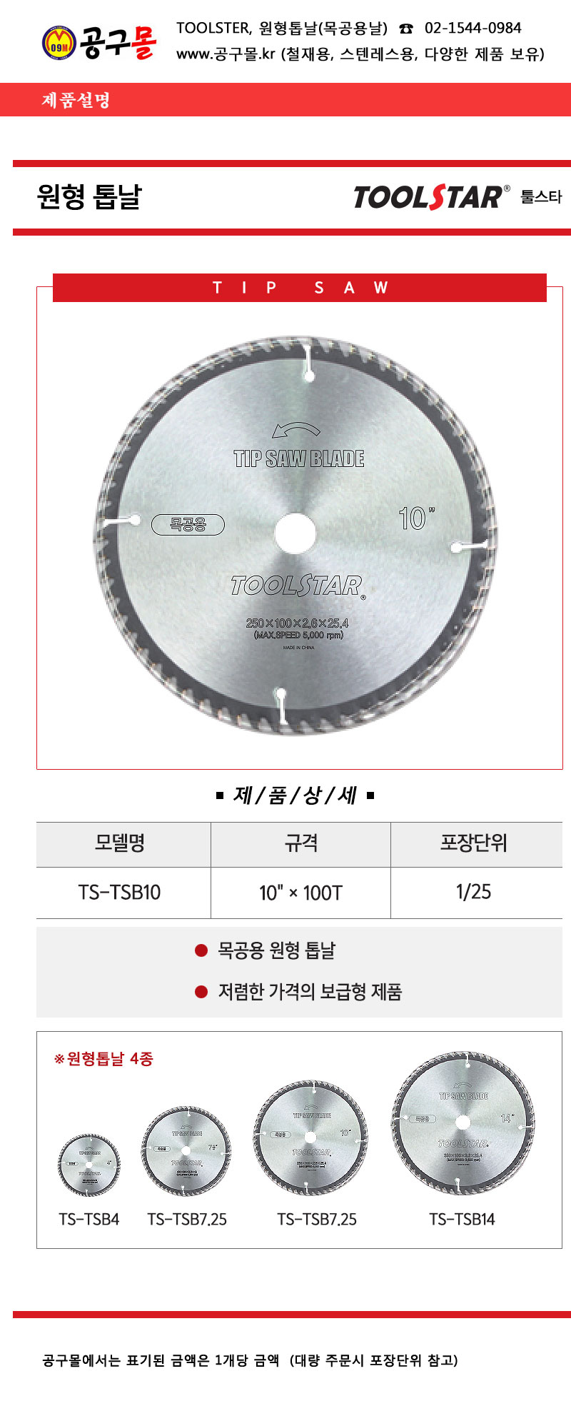 툴스타 목공용 원형톱날 TS-TSB10(100T) 툴스타,목공용톱날,목공톱,8809016300775