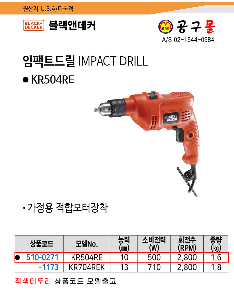 임팩트드릴 KR504RE 500W,블랙앤데커,해머드릴,black&decker, 5100271