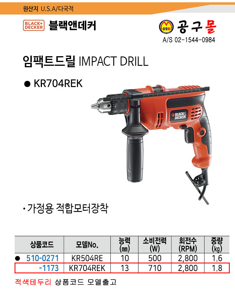 임팩트드릴 KR504RE 500W,블랙앤데커,해머드릴,black&decker, 5100271