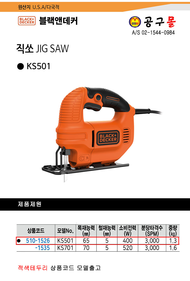 품절.직쏘 KS501 400W,블랙앤데커,전기톱,black&decker, 5101526