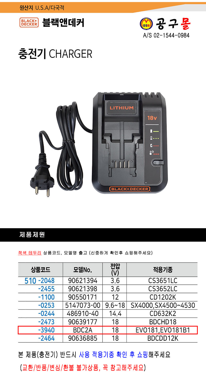 충전기 BDC2A(EVO181B1용) 블랙앤데커, black&decker,5103940