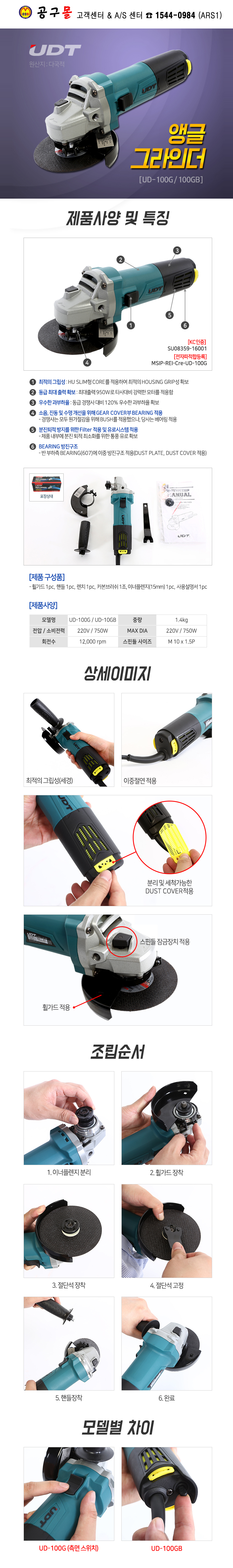 UDT 앵글그라인더 UD-100GB UTD전동공구,공구몰,디스크그라인더,그라인더,공구몰,UD100GB,5097490