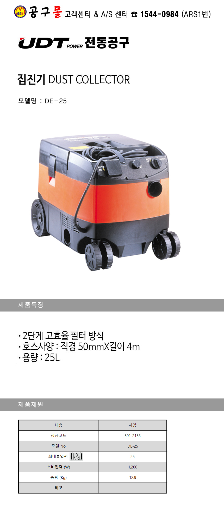 UDT 집진기 DE-25 1200W UDT,전동공구, 진공청소기, 공구몰, DE25, 5912153