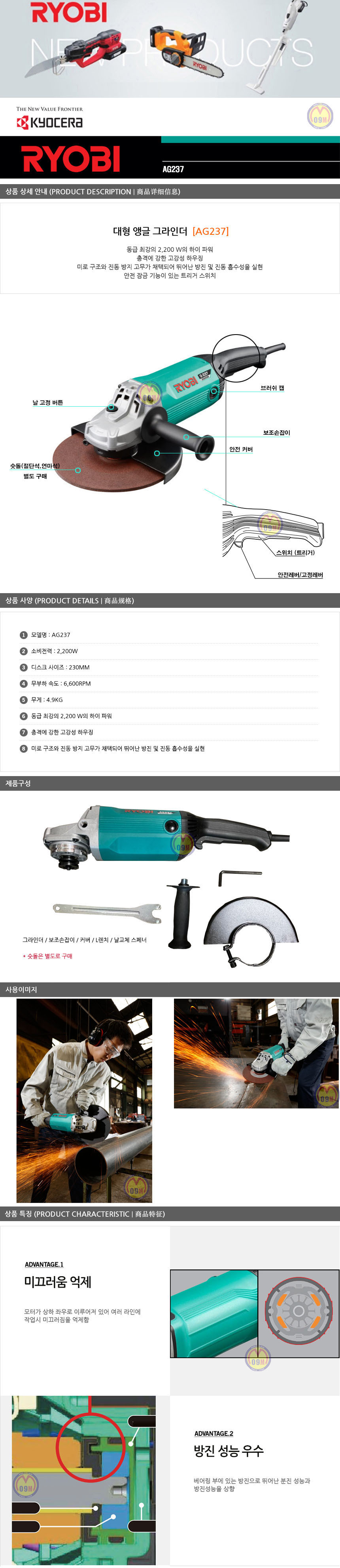 교세라 그라인더 AG237 (2200W 6600RPM 9) 앵글그라인더, 충전그라인더, 절단기