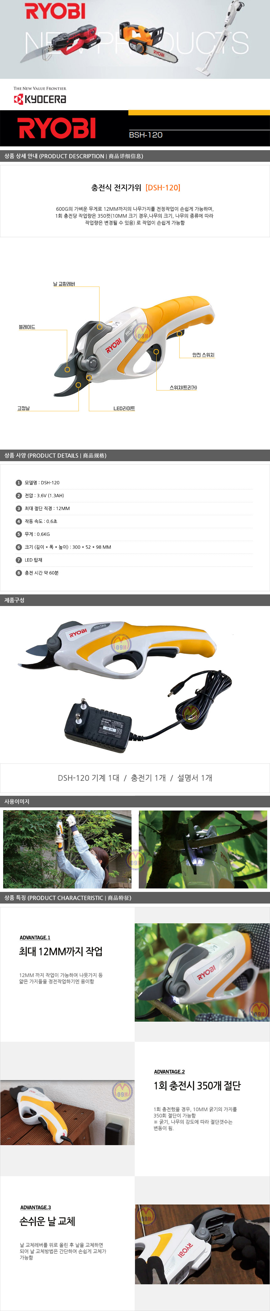 품절.교세라 충전전지가위 DSH-120 3.6V 전지가위,원예가위,DSH120  품절