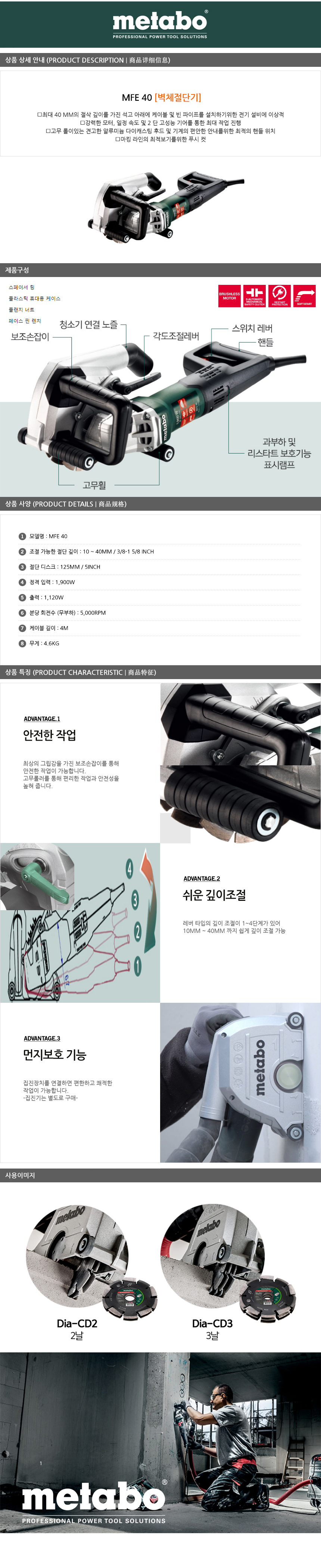 메타보 콘크리트홈파기 MFE 40, 콘크리트절단기,604040510