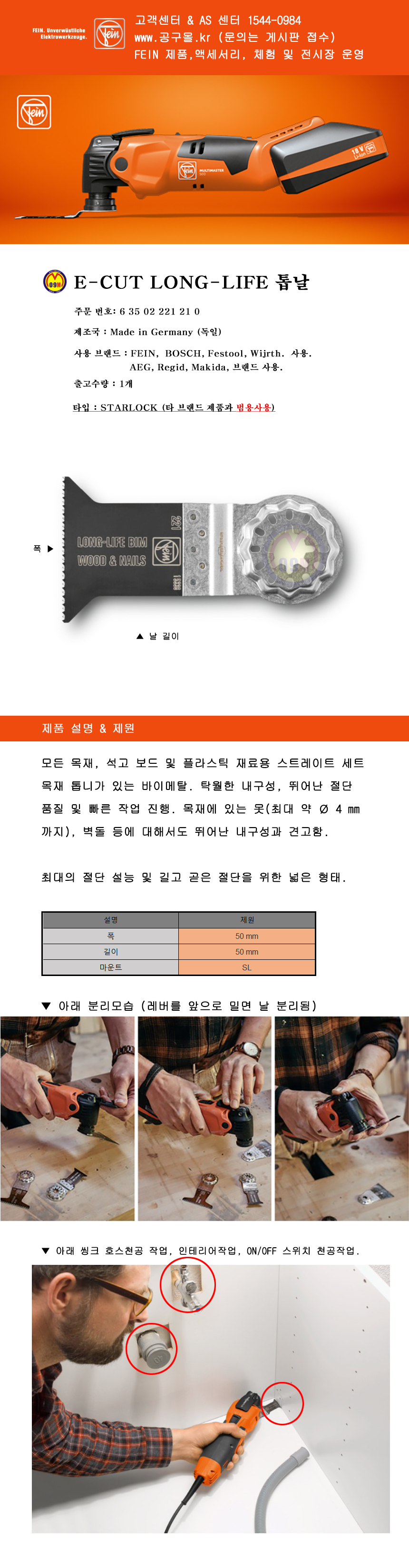 파인 E-CUT LONG-LIFE 톱날 221-50mm-1개출고,FEIN,파인,스타락, 멀티마스타, 63502221210