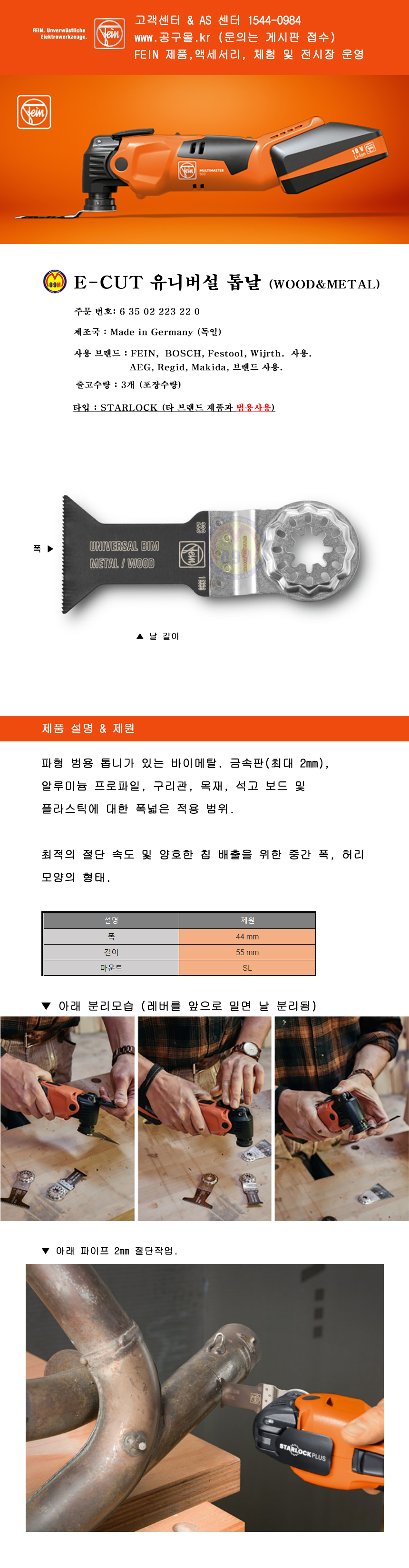 파인 E-CUT 유니버설 톱날 (METAL) 223-44mm-3개출고, FEIN,파인,스타락, 멀티마스타, 63502223220