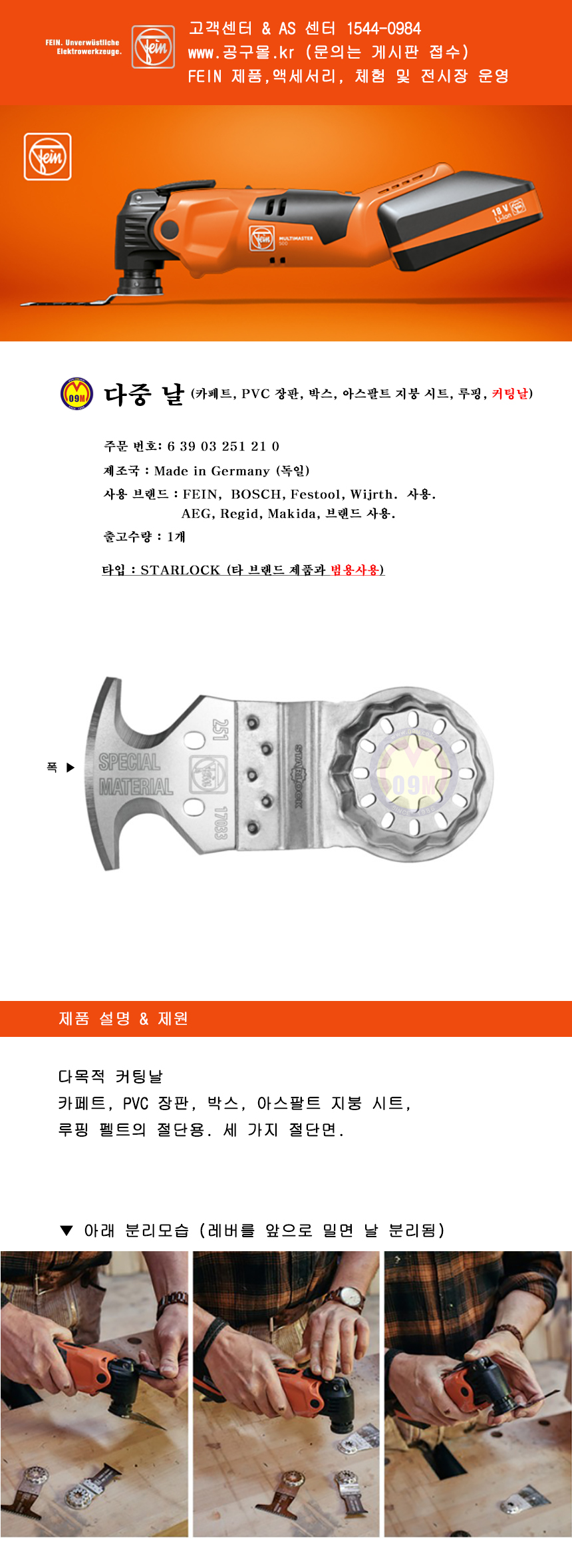 파인 다목적날 251-1개출고, 카페트, PVC 장판, 커팅, FEIN,파인,스타락, 멀티마스타, 63903251210