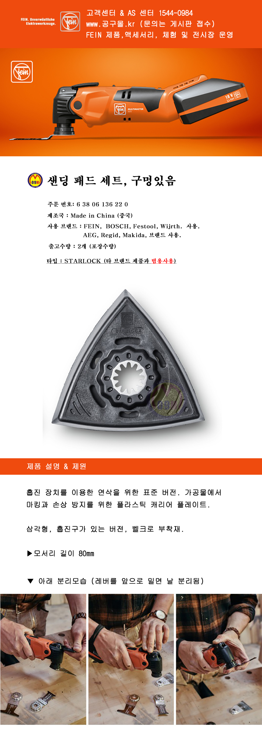 파인 샌딩패드세트 구멍있음 136-80mm-2개출고, FEIN,파인,스타락, 멀티마스타, 63806136220