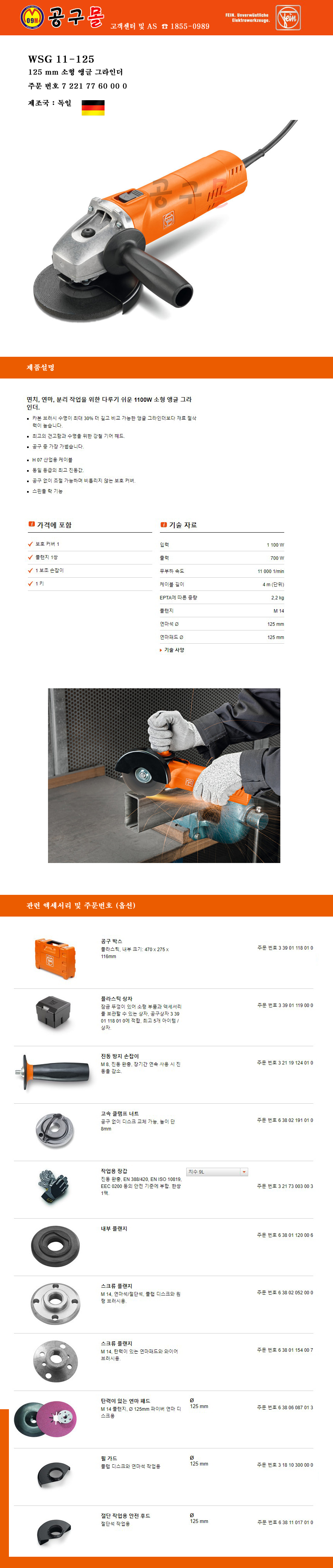 파인 125-1100W 앵글그라인더 WSG11-125 FEIN