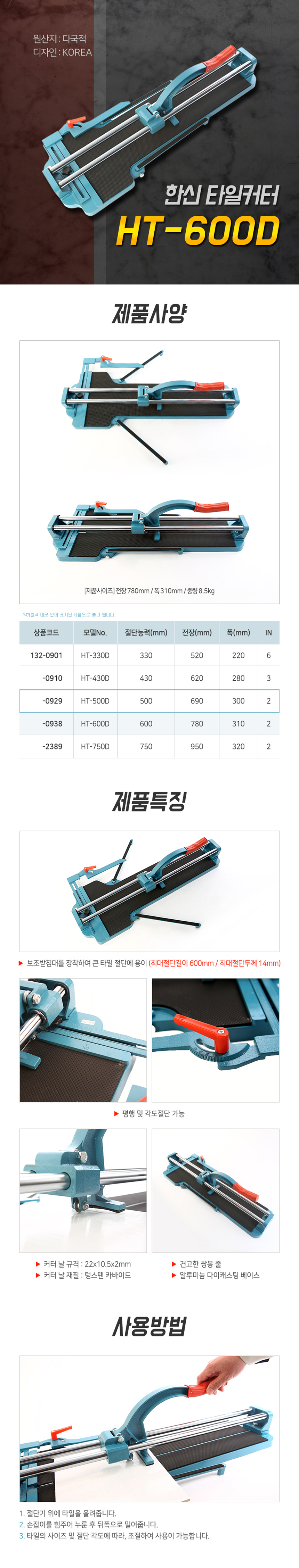 한신 타일커터(D) HT-500D 쌍줄 , 타일캇타,타일컷터