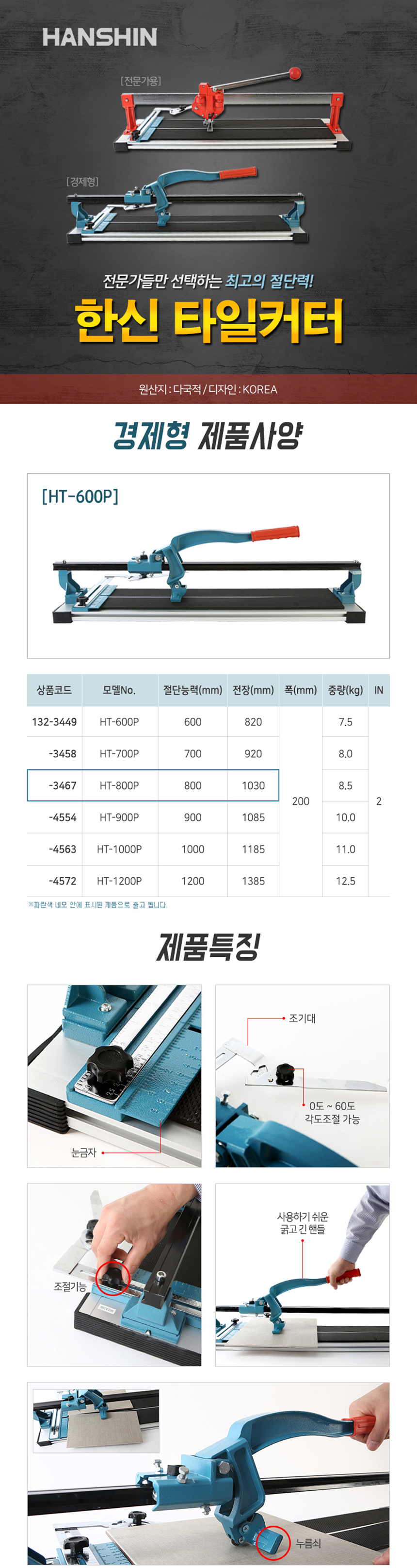 한신 타일커터(P) HT-800P 외줄 (경제형) , 타일캇타,타일컷터