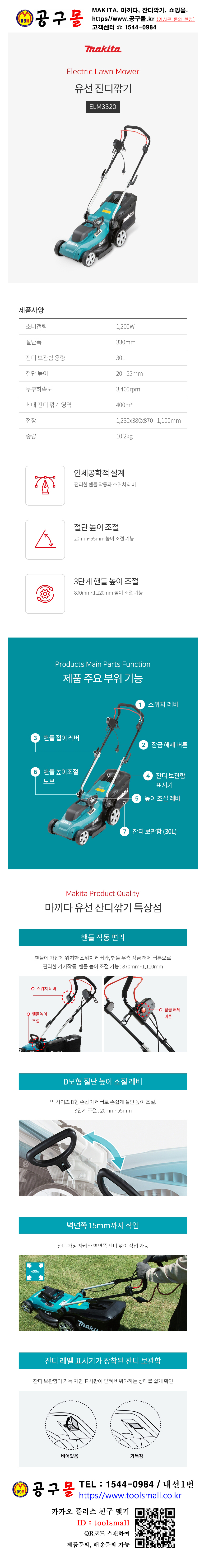 마끼다 잔디깎기 ELM3320, 330mm-1200w, 마끼다,makita, 제초기, 5148572, arm32(MD)