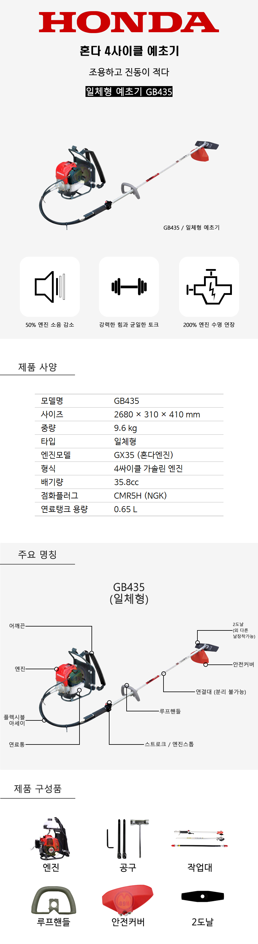 북성-일체형4사이클 엔진예초기 GB435, GB435S 4행정, 제초기, 벌초기, 공구몰.