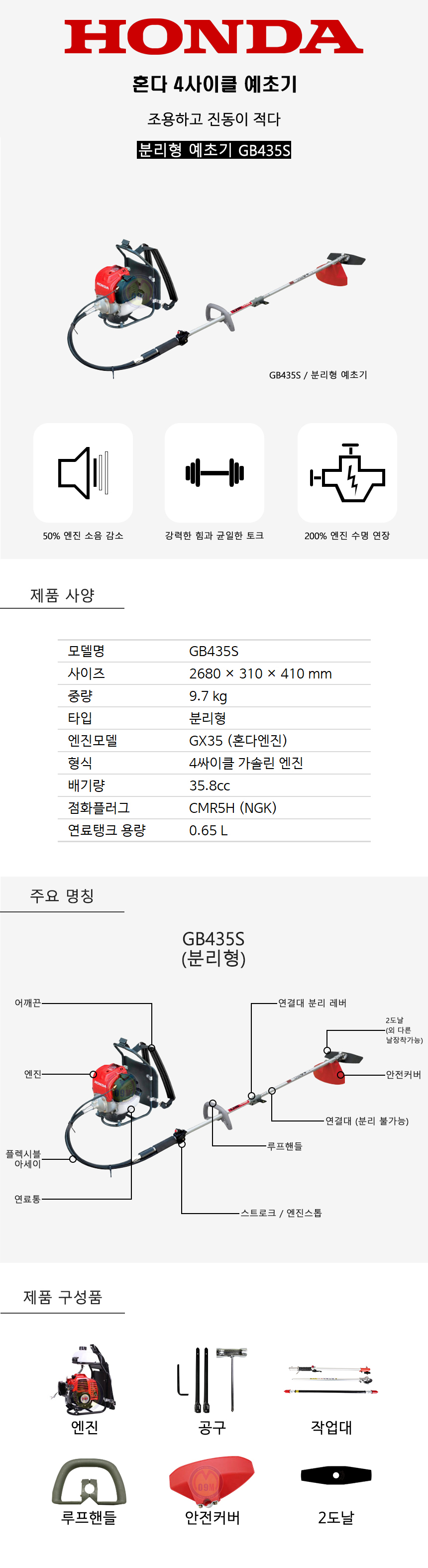 북성-일체형4사이클 엔진예초기 GB435, GB435S 4행정, 제초기, 벌초기, 공구몰.