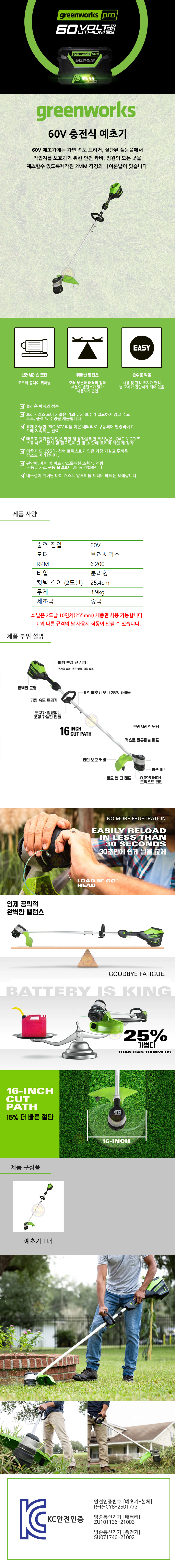 그린웍스 충전예초기(프론트,베어툴) (40V-충전기,배터리별매) 무선, 충전제초기, 벌초기