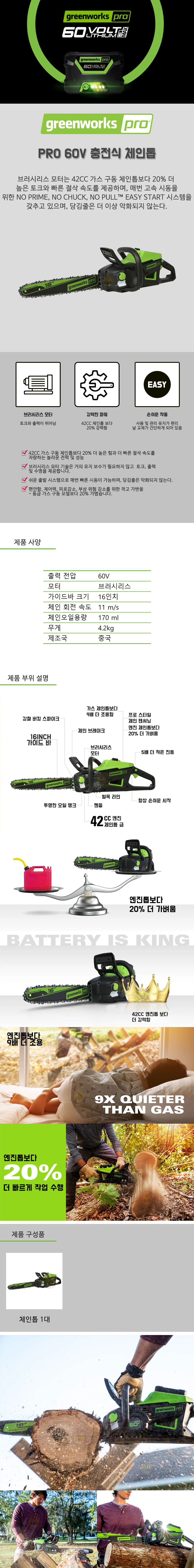 그린웍스 60V 973 체인톱(베어툴) (충전기,배터리별매) 무선, 전기, 체인쏘,