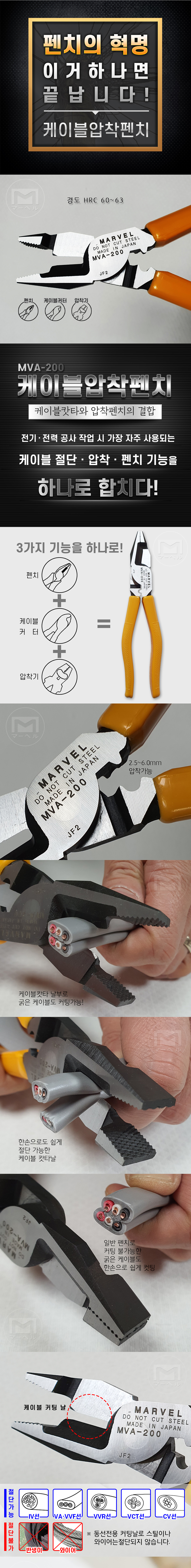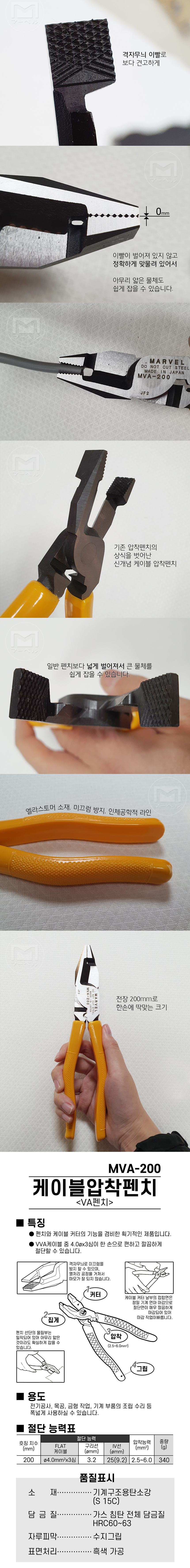 마벨 케이블 압착 펜치 MVA-200 (200mm) 다용도 펜치, 뺀치 , 케이블커터, 압착기