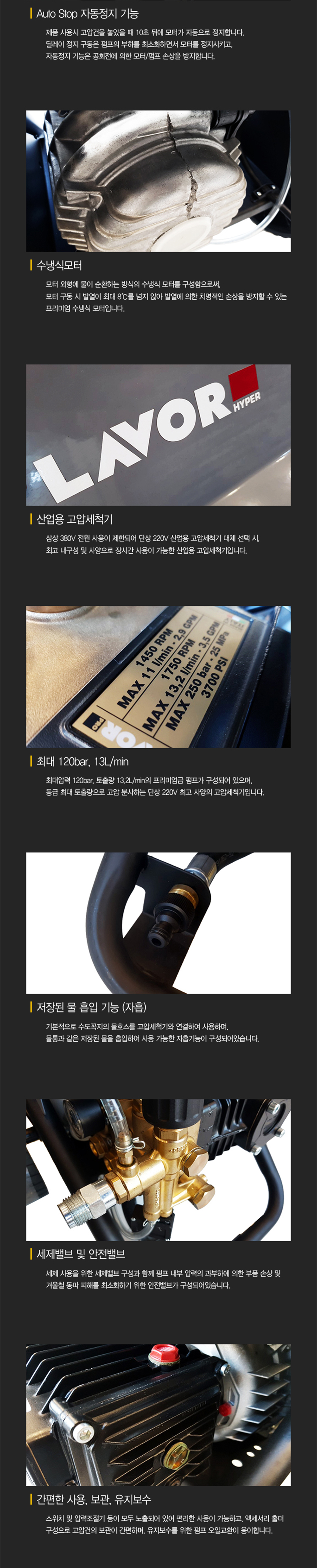 라보 산업용 고압세척기 DB150(수동) 단상3HP 150바 라보 LAVOR 220V