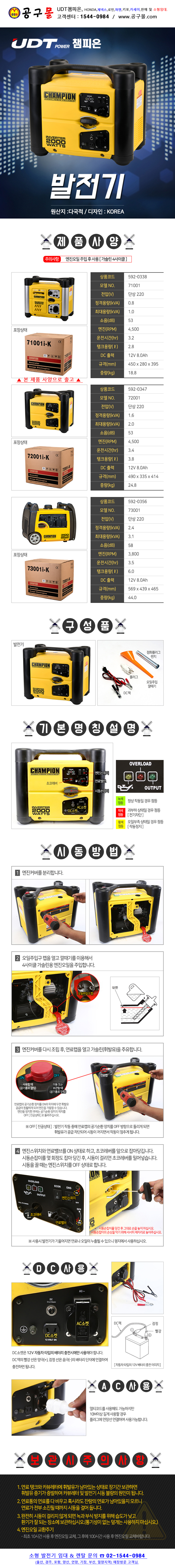 UDT 가솔린 발전기 72001 2KVA-53db-3.8L, UDT챔피온,공구몰, 저소음발전기,592-0347