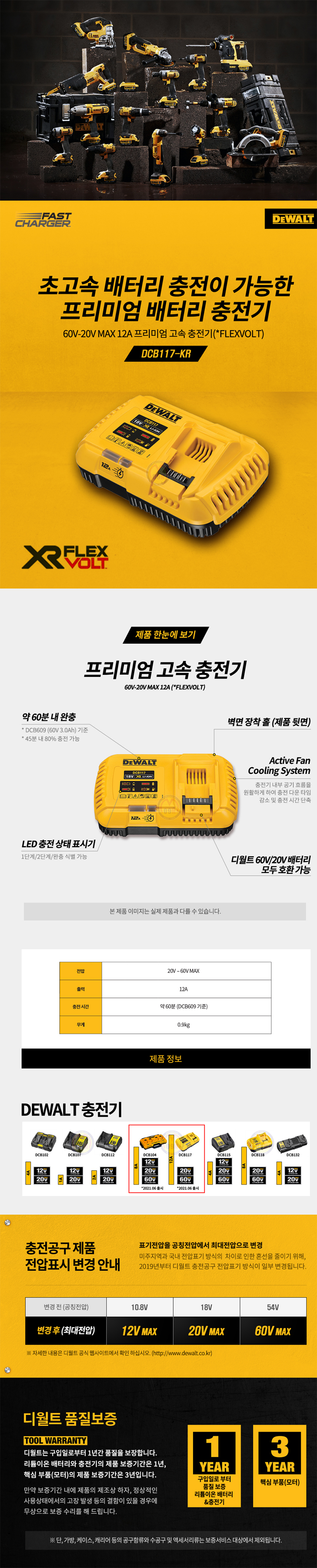 디월트 20V, 60V 고속충전기 DCB117 (12A) 충전기 18V 54V ,C510-7292