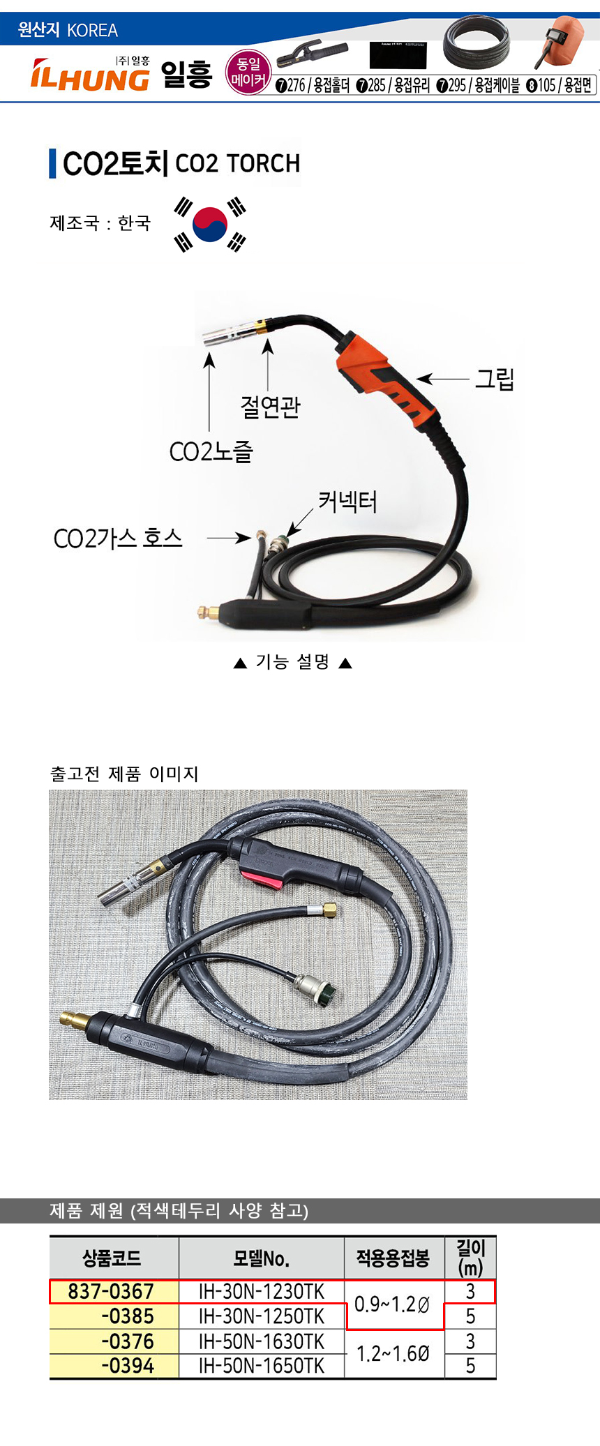 CO2토치 IH-350A-3M (IH30N-1230TK) 일흥, 공구몰, IH350A, 용접부품, CO2부품,837-0367