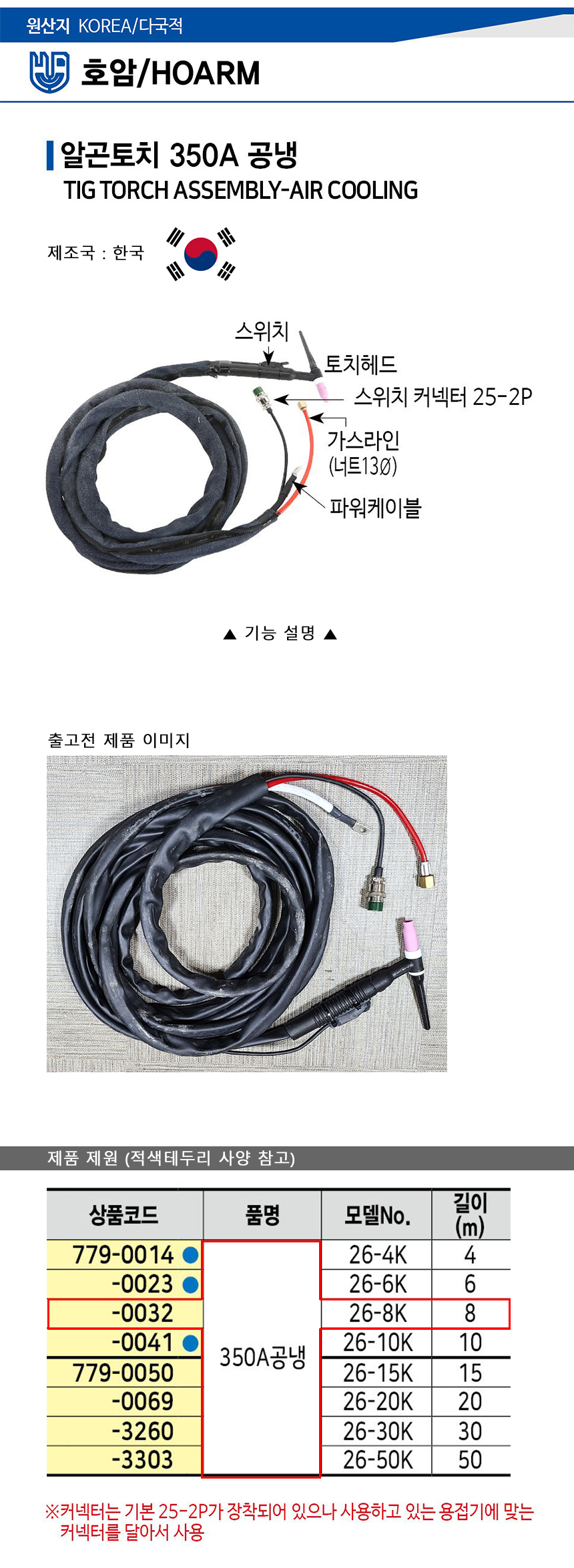 알곤토치(공냉) 가죽SET 350A-8M (26-8K) 호암, 공구몰,350A, 용접부품, 알곤부품,779-0032