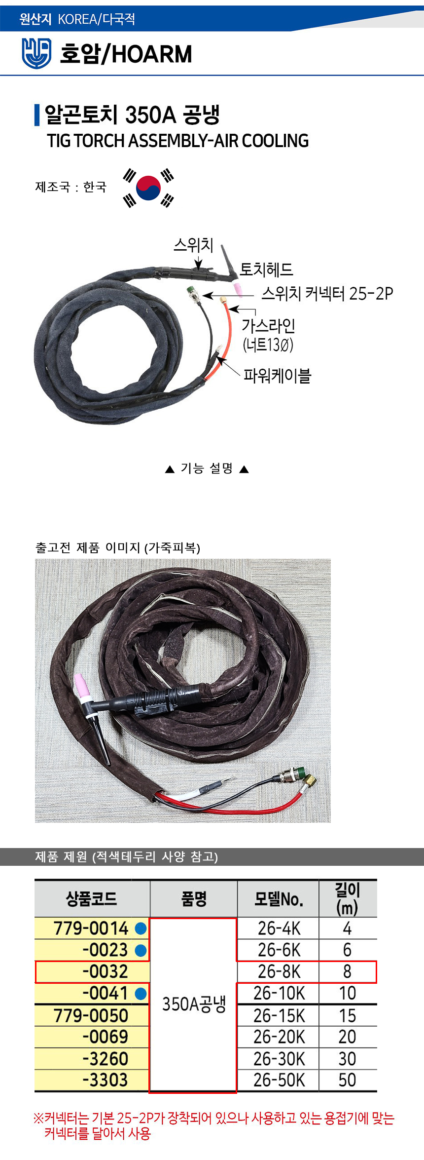 알곤토치(공냉) 가죽SET 350A-8M (26-8K) 호암, 공구몰,350A, 용접부품, 알곤부품,779-0032