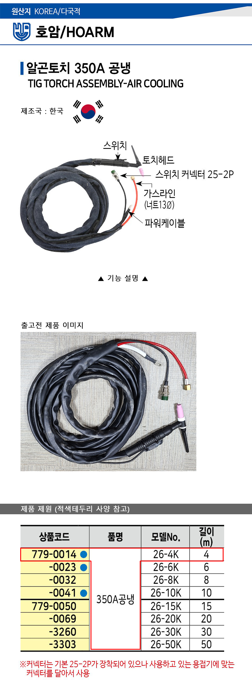 알곤토치(공냉) SET 350A-4M (26-4K) 호암, 공구몰,350A, 용접부품, 알곤부품,779-0014