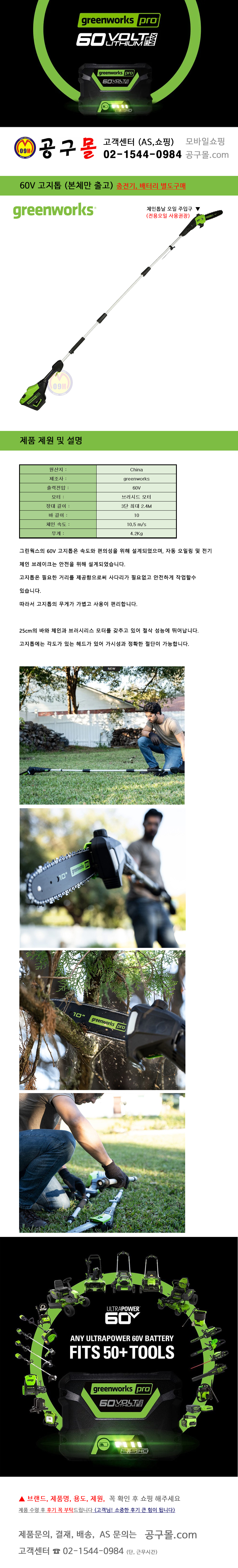 그린웍스 60V 273 고지톱(베어툴) (충전기,배터리별매) 장대톱