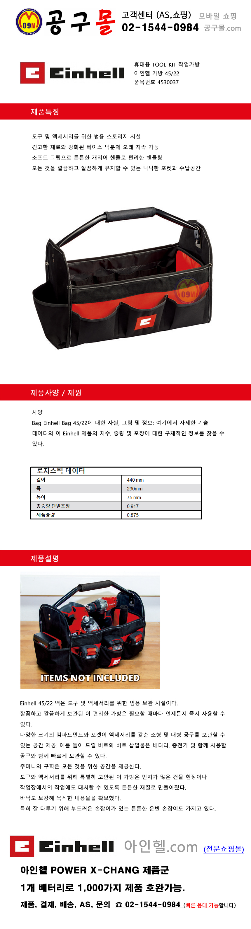 아인헬 휴대용 TOOL-KIT 작업가방, einhell Bag 45/22, einhell. 공구몰, 코리아, 공구가방, 4530037